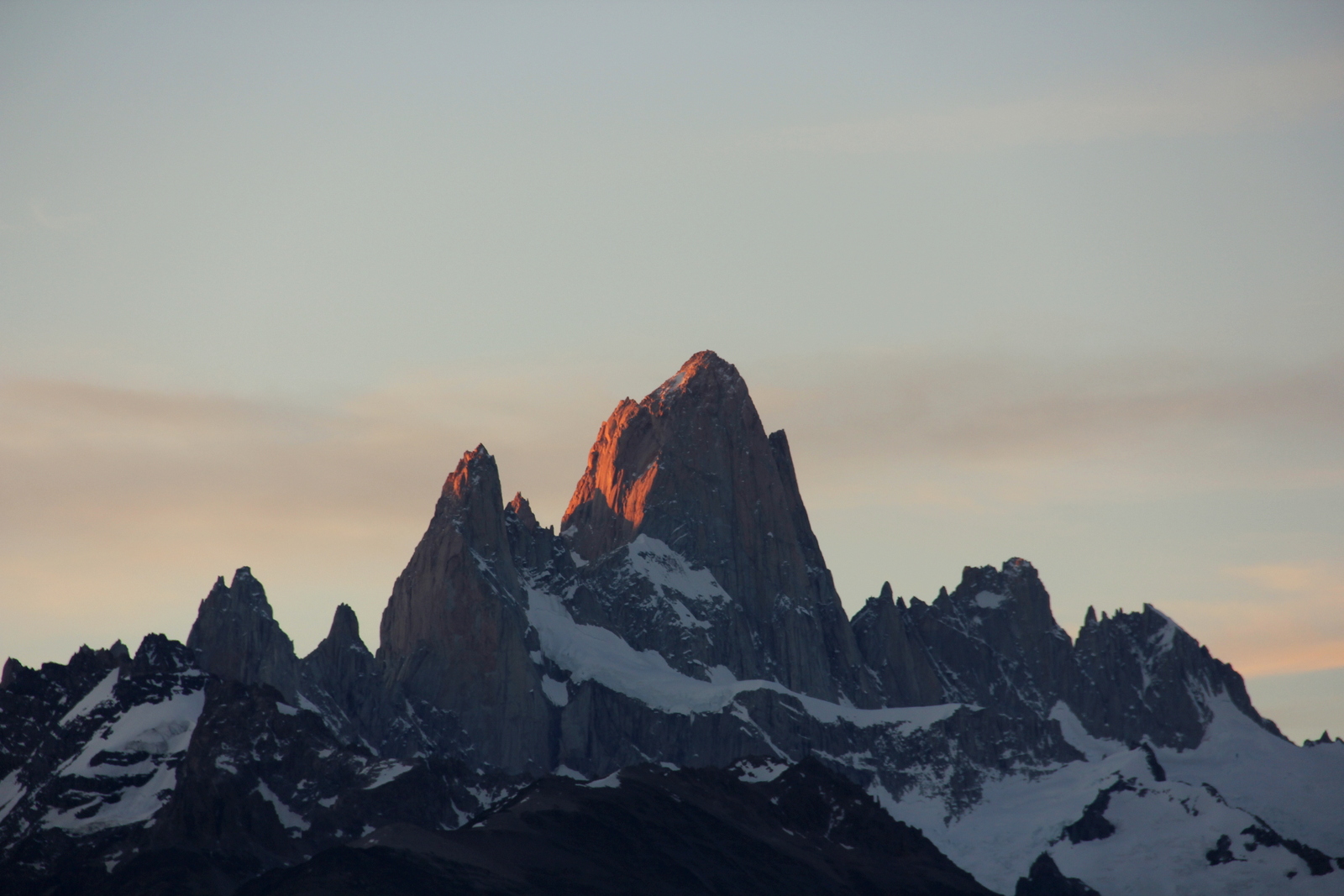Partimos de El Calafate em direção a El Chaltén pela Ruta 40 e, em seguida, pela RP23. Esse trecho das estradas corta toda a extensão do Parque Nacional Los Glaciares. A presença constante de lagos, cordilheiras nevadas e a solidão do asfalto fazem esse trajeto ser um dos mais bonitos que percorremos em toda a viagem. Por causa disto, levamos quase seis horas para completar o caminho de pouco mais de 200 quilômetros. A quase todos os instantes parávamos para registrar o momento e curtir o visual. Nos últimos quilômetros nos aproximamos do imponente Cerro Fitz Roy, que então estava avermelhado pelos raios do sol de fim de tarde. Rota espetacular, recomendamos a todos os mochileiros.