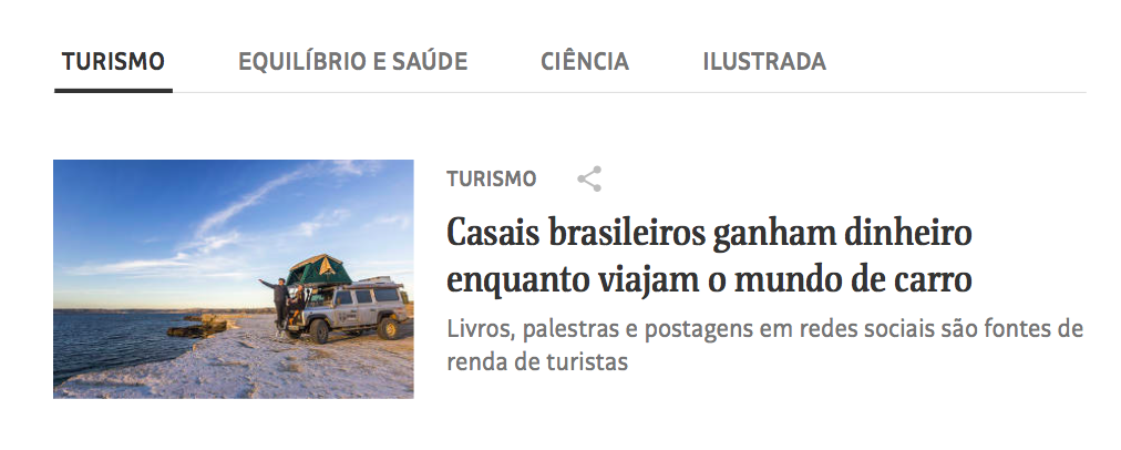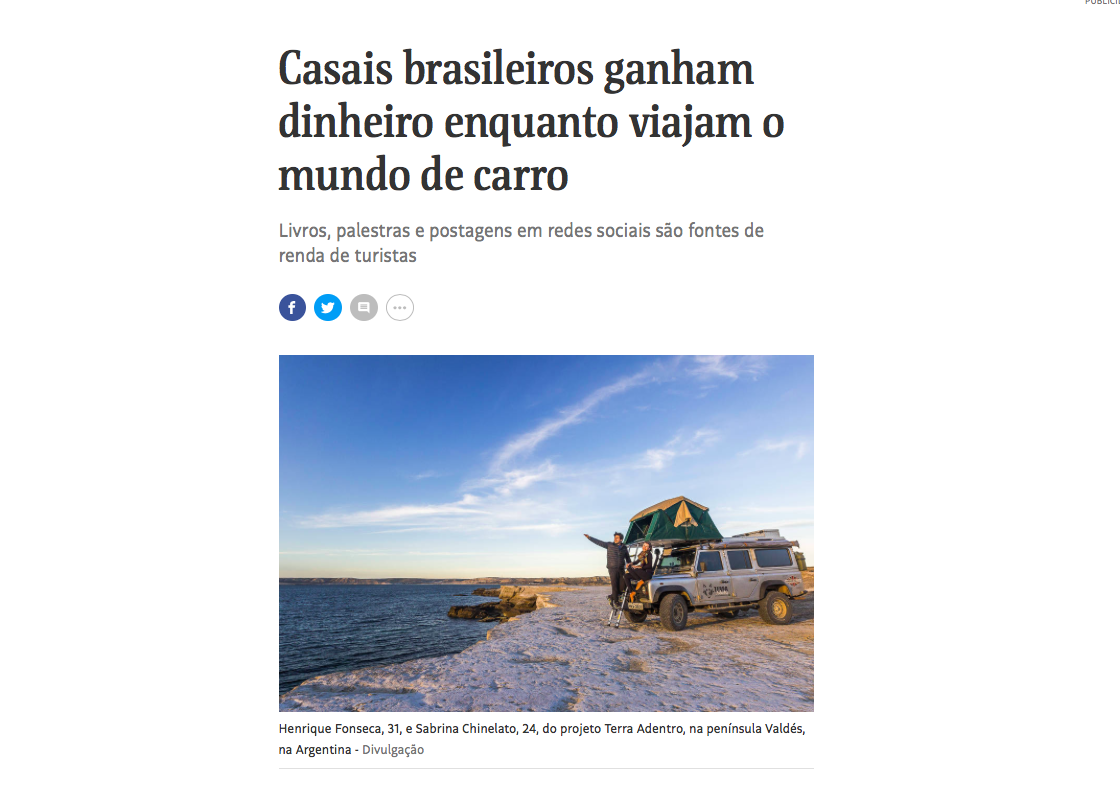 O trabalho que fazemos na estrada, o qual ajuda a financiar a nossa Volta ao Mundo de Carro, é sempre motivo de muita curiosidade. Pensando nisso, a Folha de São Paulo fez uma entrevista conosco sobre este assunto.