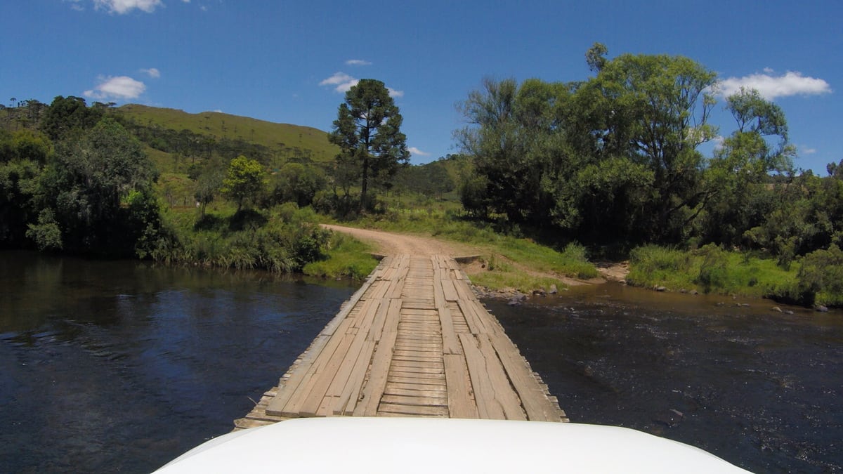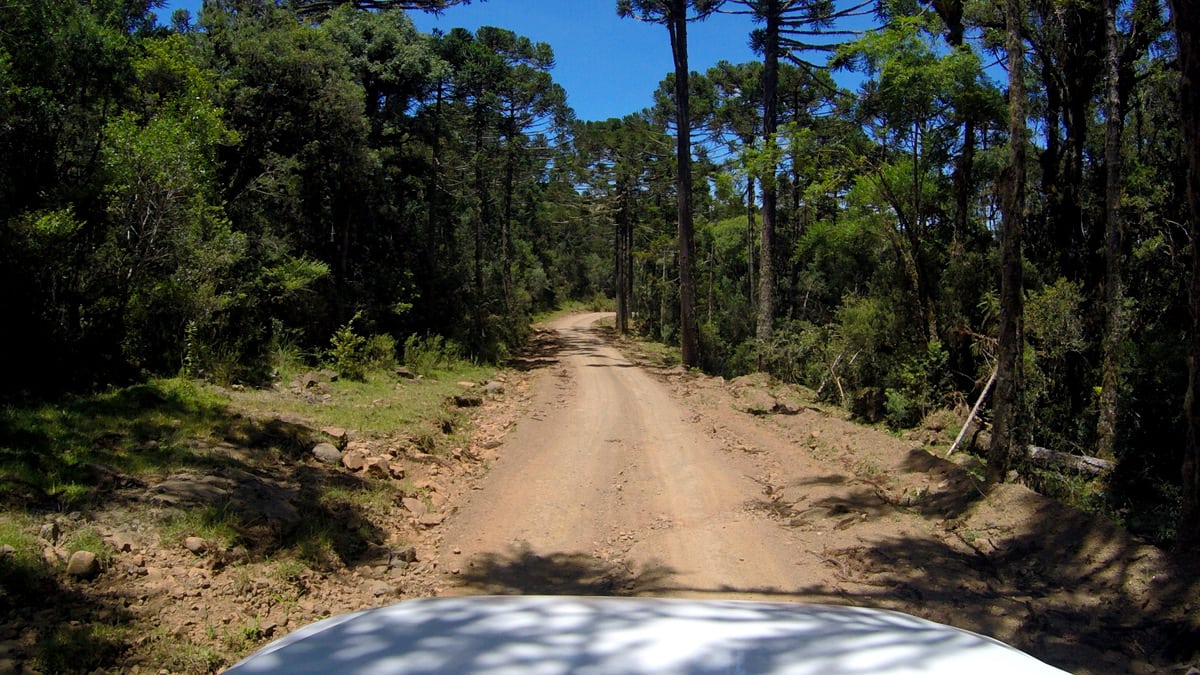 Colhemos algumas informações com moradores da região e já nos preparamos para os inúmeros quilômetros de estrada de chão que estavam por vir. De Bom Jardim da Serra a Cambará do Sul foram, aproximadamente, 140 km por entre estradas de terra e de cascalho. Uma das estradas mais belas que já cruzamos no Brasil, repleta de pontes de madeira, florestas de araucárias e muitas cachoeiras pelo caminho. Nem contamos quantas vezes paramos para nos refrescar nos rios límpidos que brotavam das montanhas acima. As mais de quatro horas pelas estradas de chão passaram num piscar de olhos e sequer sentimos o cansaço do balanço do carro.