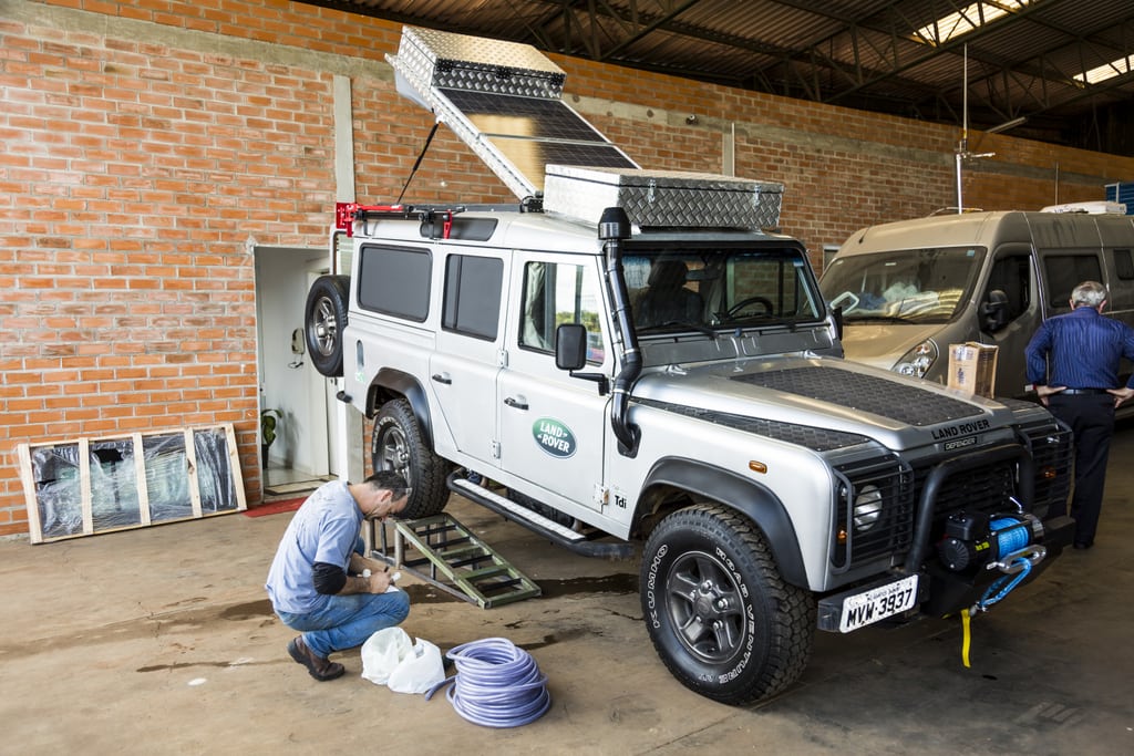 Desde que tomamos a decisão de viajar de Land Rover Defender 110, tínhamos um único objetivo em mente: construir um motorhome que fosse auto-suficiente de energia e água, já que nosso propósito é viajar por regiões inexploradas do planeta. Pesquisamos inúmeros projetos em Defender 110, anotamos os pontos positivos e negativos de cada um deles e, ao final desta análise, decidimos elaborar um projeto que englobasse as características que nos agradavam e descartar aquelas que não nos agradava muito. Com as ideias rascunhadas, iniciamos a procura por alguma empresa especializada. Após algum tempo pesquisando e fazendo orçamentos, fechamos negócio e levou 90 dias para nossa casa sobre rodas ficar pronta.