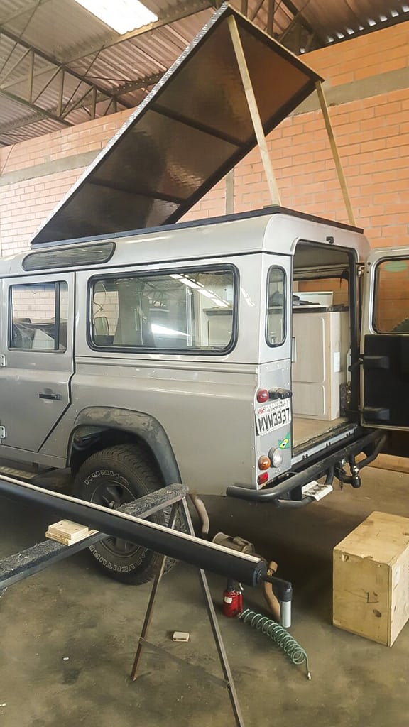 Esta era uma pergunta que não encontrávamos uma resposta definitiva. A maior parte dos amigos overlanders que conhecemos viajavam com a barraca de teto, sendo que muitos deles adoravam a praticidade e conforto da barraca. Por outro lado, o teto móvel, que é muito fabricado por empresas na Austrália e África do Sul, é quase inexistente no Brasil. Esta foi uma das decisões mais difíceis do planejamento: optar pela escolha certa, já testada por viajantes ou partir para o desconhecido? Depois de muito pesquisar e de receber o aval do Rafael, decidimos por fazer um teto móvel, ou conhecido também como semi pop-up.