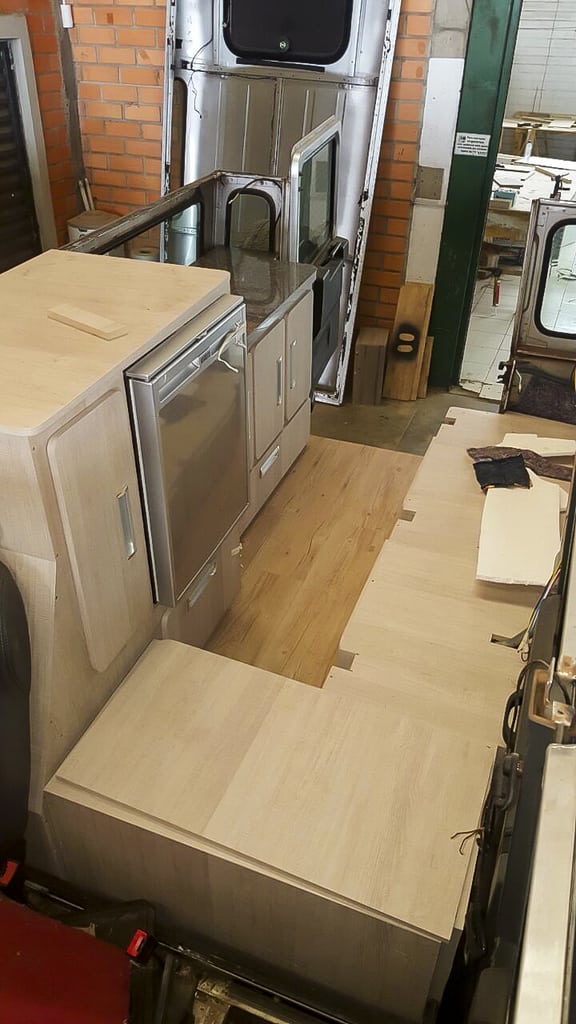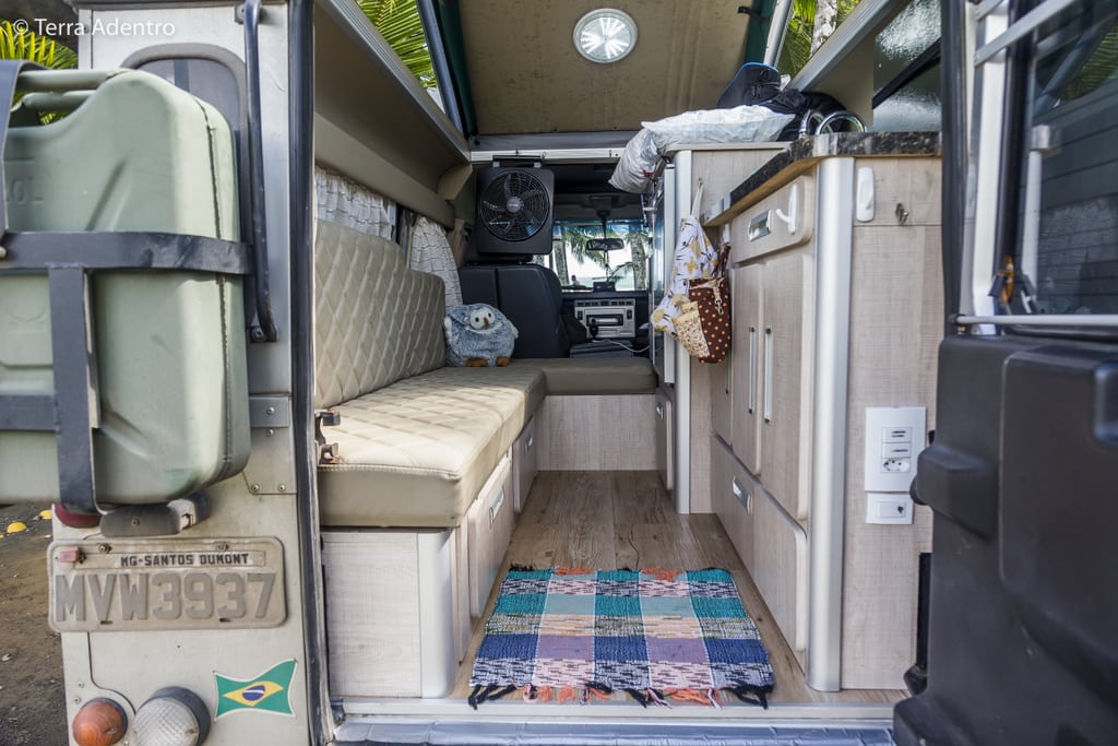 Só compramos por fora a nossa geladeira Waeco 80l e o fogão a gasolina da Coleman.