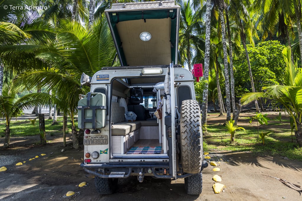 Então, nós decidimos ter as duas opções, pois a barraca de teto é bem mais confortável, enquanto a cama interna é excelente para dias frios e quando dormimos em cidades, como postos de combustíveis, estacionamento de supermercados e etc.