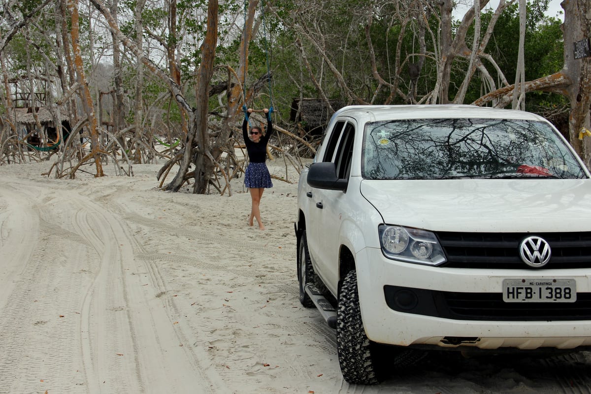 Se o seu carro não for 4×4, vá com bastante cautela e com os pneus bem descalibrados (algo como 16 libras e, veículos 4×4, aproximadamente 20 libras em cada pneu), pois as areias de Jericoacoara são extremamente traiçoeiras. Se você não tiver muita experiência em off road, é mais do recomendável contratar algum guia local, pois os mesmos sabem mais do que ninguém passar por lugares inimagináveis com carros sem qualquer tipo de tração.