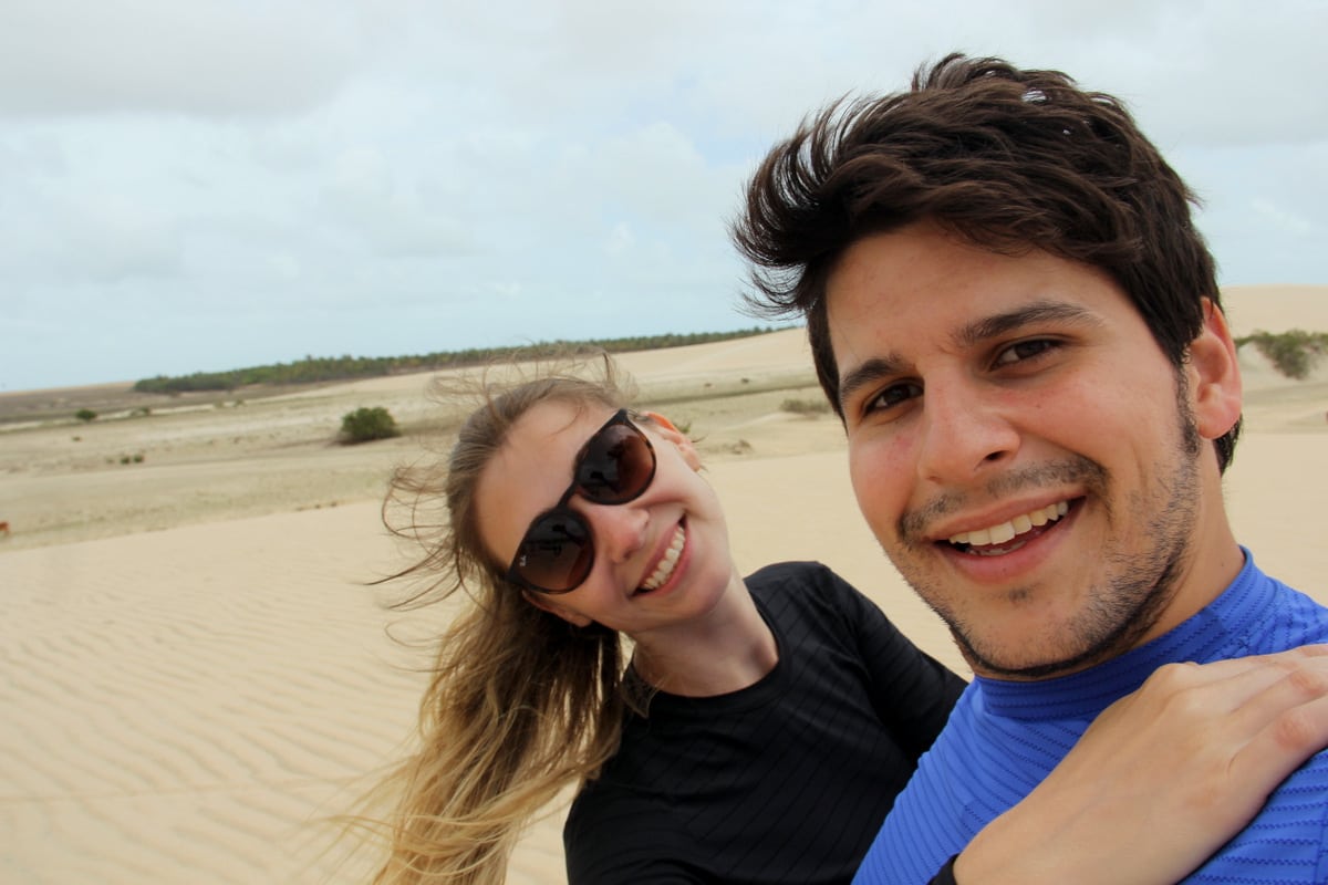Chegamos no começo da tarde em Jijoca de Jericoacoara, cidade que é base de acesso para a vila. Conversamos bastante com alguns moradores locais, que nos desaconselharam seguir para a praia sem o acompanhamento de guias. Segundo eles, o trajeto não é demarcado. Ficamos um pouco desconfiados, pensamos em ir por conta própria, mas, já na saída, decidimos chamar um guia, que tinha nos oferecido um preço super acessível. Foi a decisão mais acertada possível!