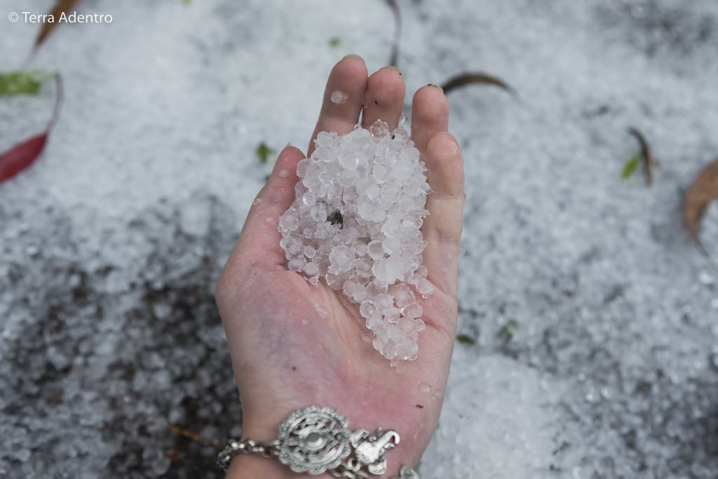 Paramos o Mochileiro no acostamento e aproveitamos aquele momento para fotografar e curtir os flocos de neve que caíam do céu. Pouco tempo depois, o tempo abriu e a neve que cobria o asfalto já se transformara em água, que escorria por todos os cantos. Pouquíssimos minutos que guardaremos com muito carinho em nossas recordações.