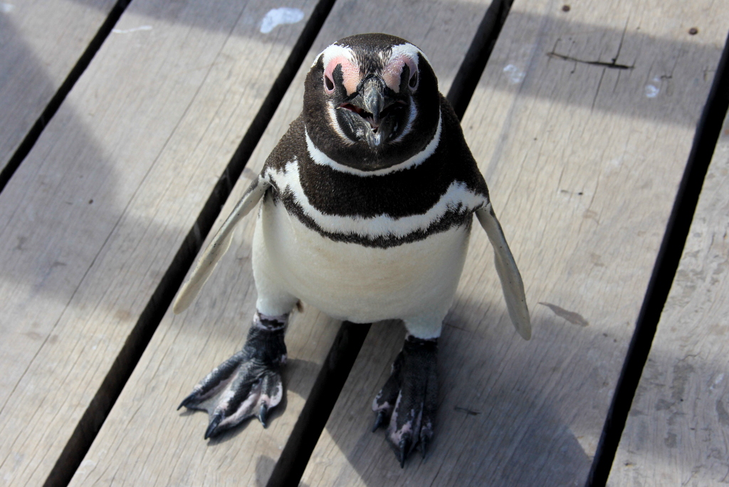 Apesar de o parque limitar os locais onde podemos andar, os pequeninos pinguins não respeitam os limites e caminham em nosso meio. Embora sejam bem engraçadinhos, eles passam tão próximos de nós que devemos tomar cuidado com suas possíveis bicadinhas.