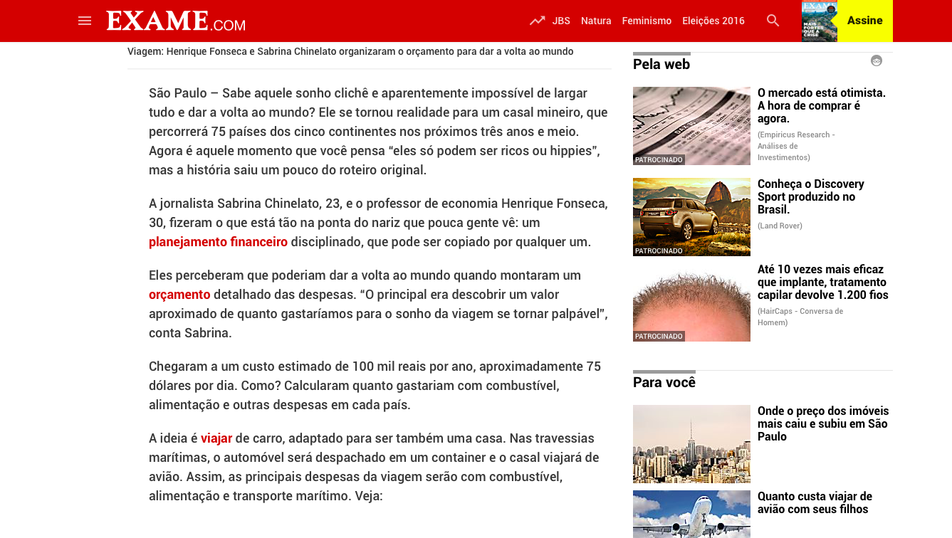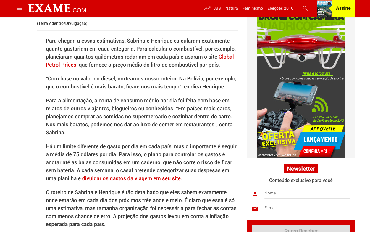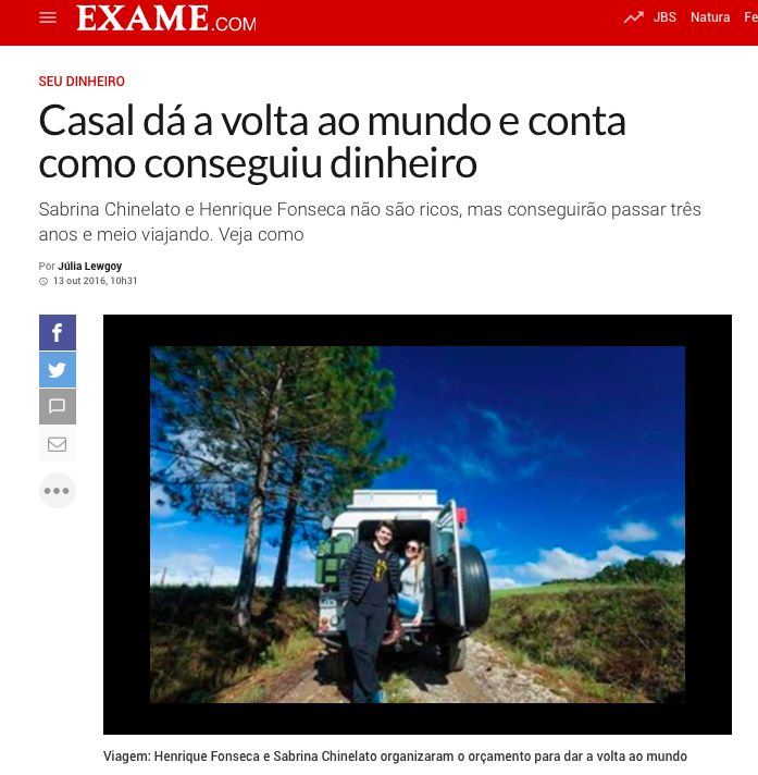 Logo que a Expedição Extremos começou, a Revista Exame publicou um reportagem contando como planejamos o nosso orçamento para viajar três anos e meio. Leia aqui a matéria completa.
