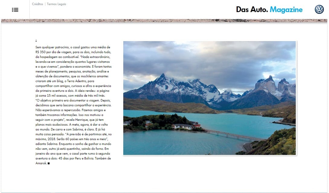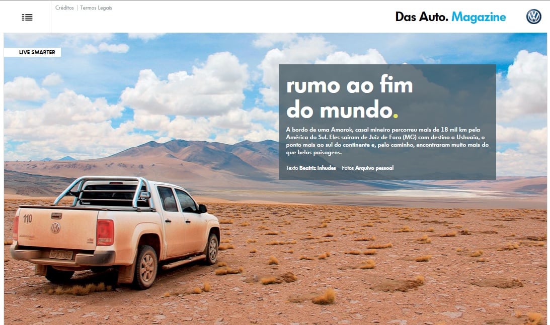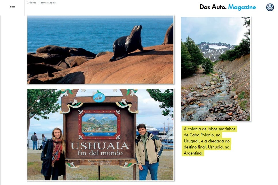 Esta reportagem sobre a nossa aventura rumo ao fim do mundo foi publicada na Das Auto. Magazine, a revista nacional da Vokswagen, em setembro de 2015.