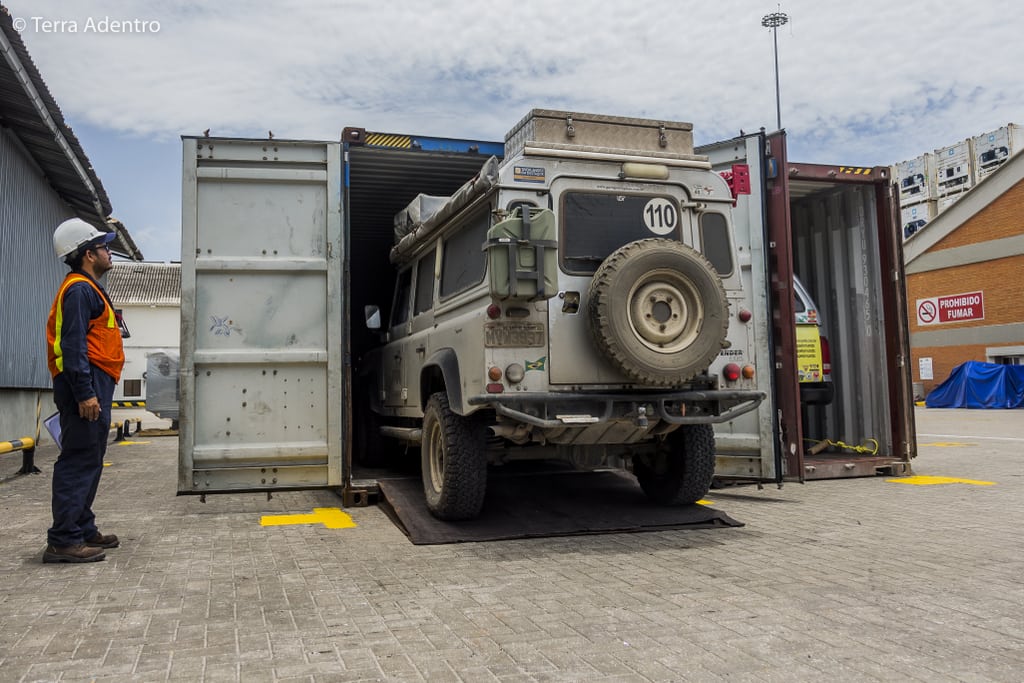 Como estávamos com os dias contados e não poderíamos atrasar o envio do carro, os Alemães nos indicaram um americano, que viajava sozinho em uma Defender 110, e também estava interessado em despachar o carro o quanto antes.