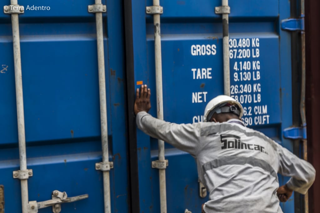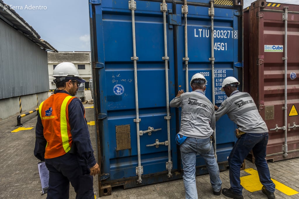 Do escritório da empresa, os quatro carros seguiram rumo ao porto. Na entrada, apresentamos os documentos e nos mostraram onde estavam os contêineres a nossa espera.