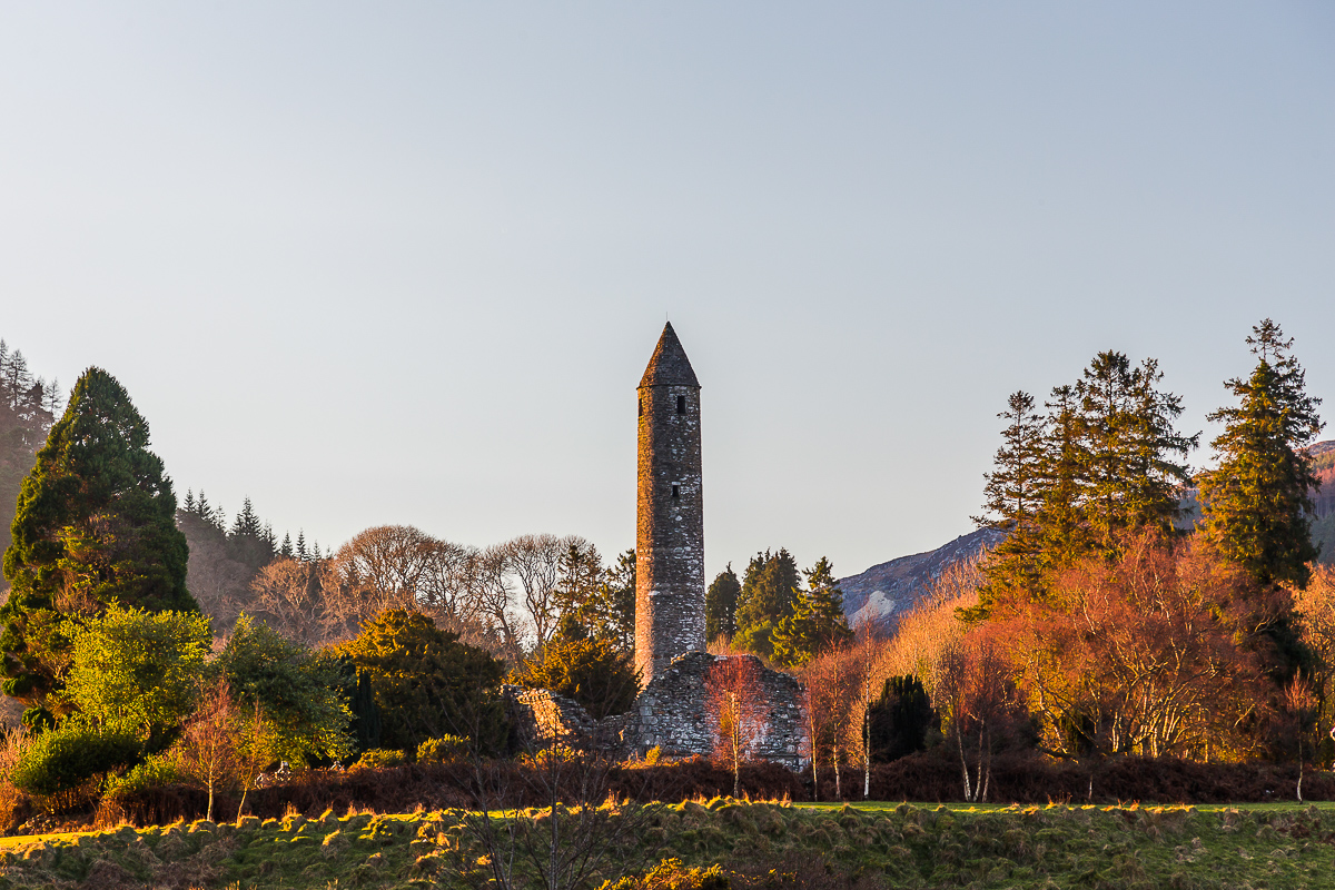 O vale faz parte do famoso Wicklow Mountains National Park, um dos cenários do filme P.S. Eu Te Amo. Além das paisagens fantásticas, em Glendalough conhecemos também as ruínas de um antigo Monastério, que ficou ainda mais encantador à luz do pôr do sol.