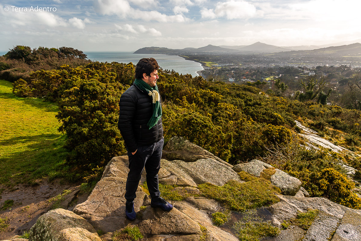 Além das Wicklow Mountains, outro destino que amamos conhecer na Irlanda foi a região de Killiney Hill, uma montanha que forma o limite sul da Baía de Dublin. Fizemos uma pequena trilha até o alto da colina e lá de cima conseguíamos observar quase todas construções da capital.