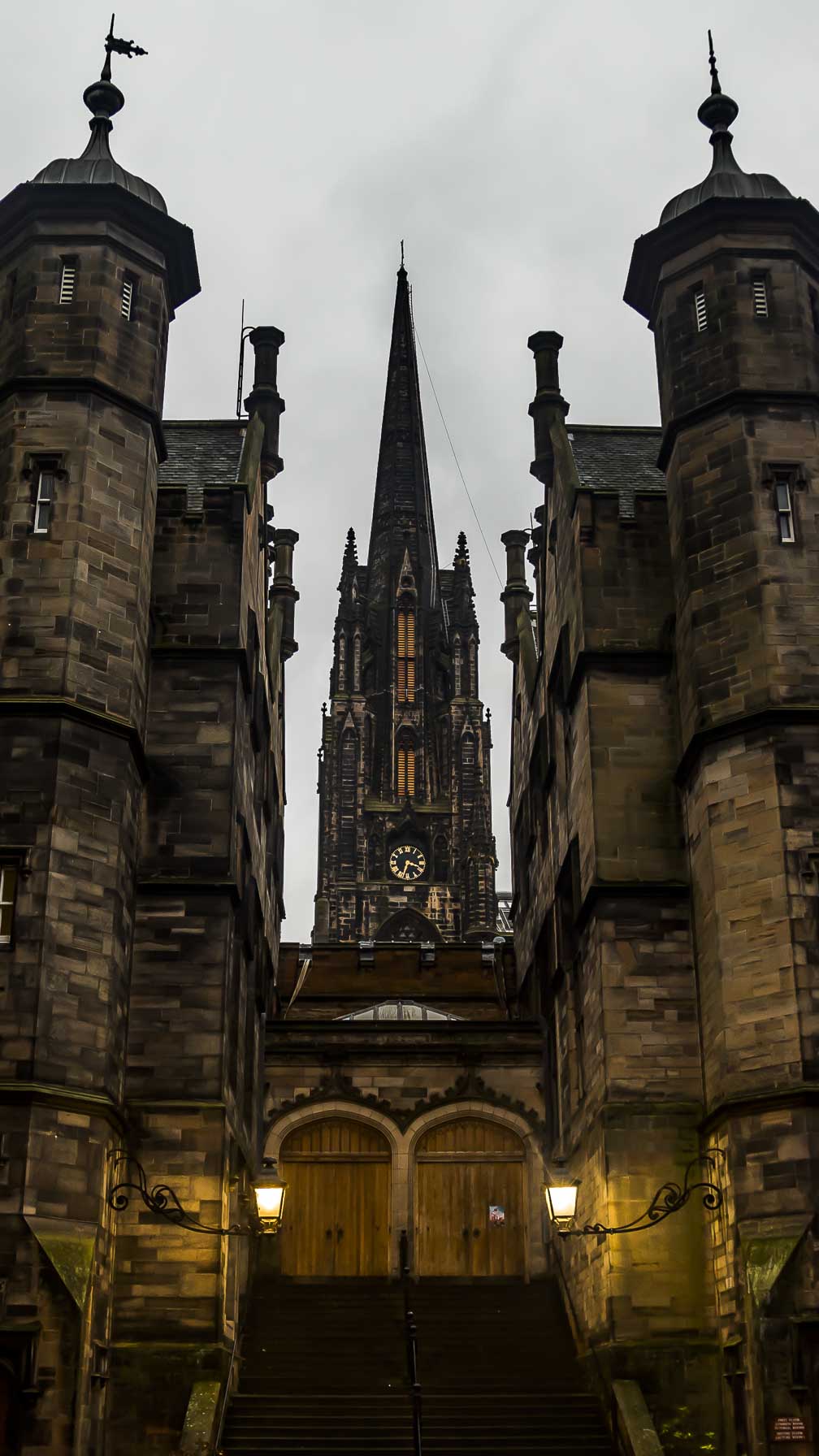 Parecíamos que estávamos em outro planeta ou nas terras de Harry Potter. Assim nos sentimos dentro do imponente portão do New College Edinburgh, um dos cenários urbanos mais incríveis do mundo.