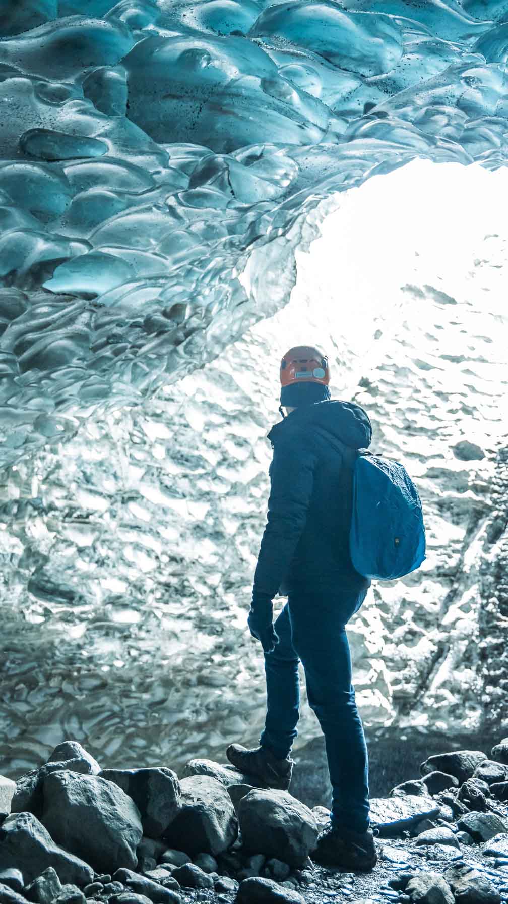 As cavernas são formadas no interior de um gigantesco glaciar, criando cenários fascinantes.